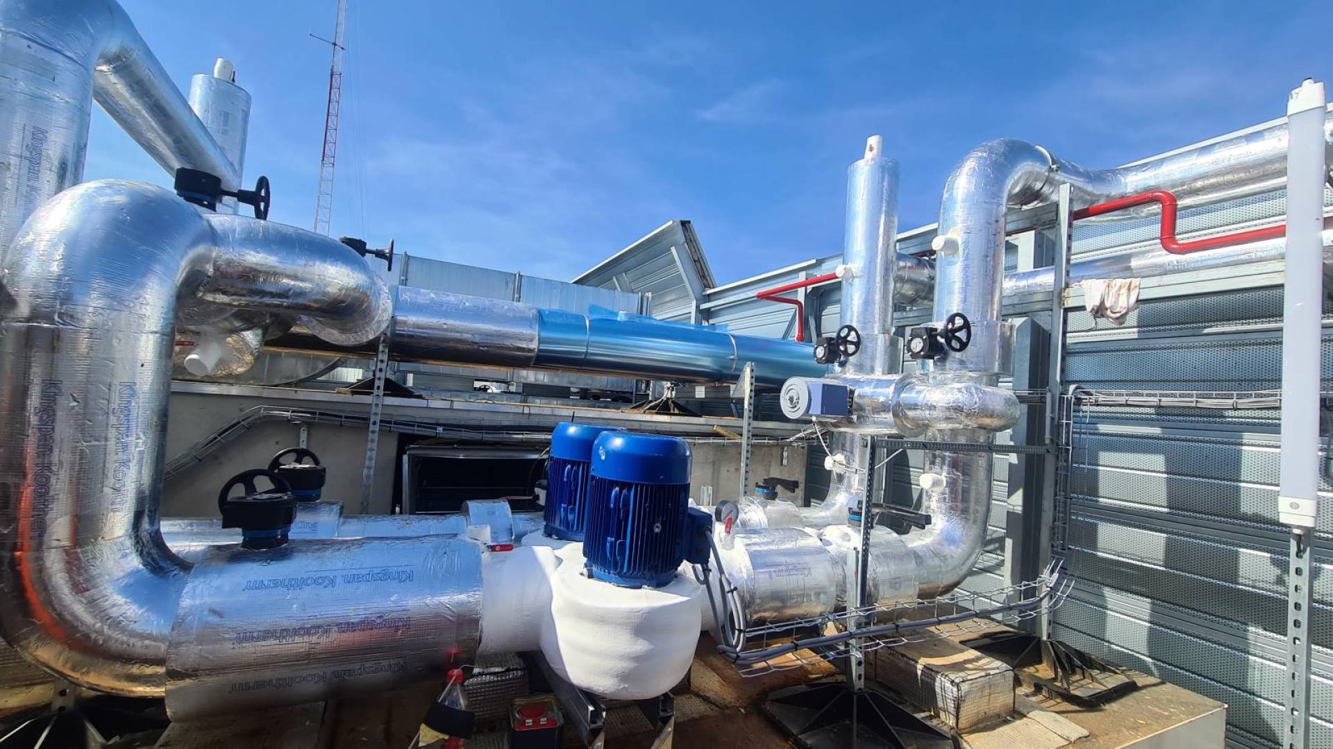 - La production frigorifique par deux pompes à chaleur à condensation par air situées en toiture,